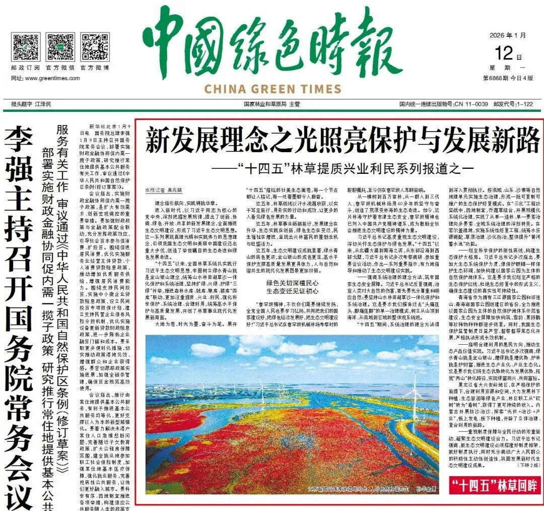 1.新发展理念之光照亮保护与发展新路,中国绿色时报刊发林草提质兴业利民系列报道(通讯员黄帅)