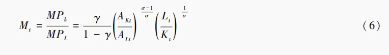 由式(1)得到农业资本与劳动的边际产出MPK、MPL,用Mt表示资本与劳动的边际产出比。