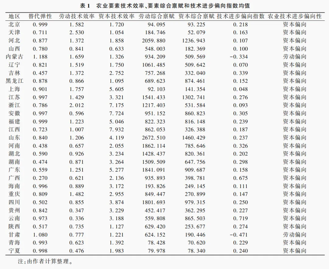 (一)有偏技术进步改变了农业要素技术效率和要素综合禀赋