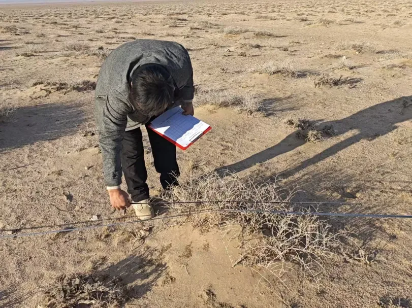4. 1月13日,内蒙古巴丹吉林自然保护区塔木素工作站在塔木素布拉格苏木布勒呼木德勒嘎查,开展2026年人工造林种草植被覆盖度调查工作,调查面积共计11625亩。