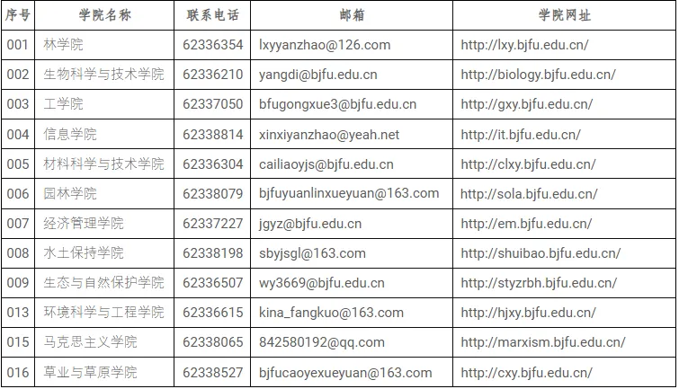 1、研究生院招生办公室咨询电话:010-62336079/8380/8214;邮箱:yzb@bjfu.edu.cn;