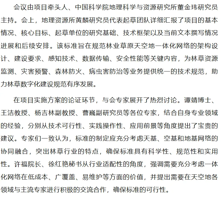 >国家标准《林业草原天空地一体化网络技术要求》启动会顺利召开