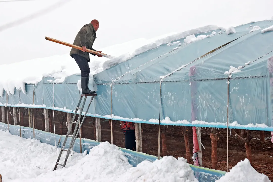 降雪区域可提前在保温被外加盖一层棚膜,既有利于除雪,也能增强保温。提前准备除雪工具,除雪期间及时清除设施顶部的积雪,若雪量过大,清除困难,应果断破膜保棚,避免整体坍塌。