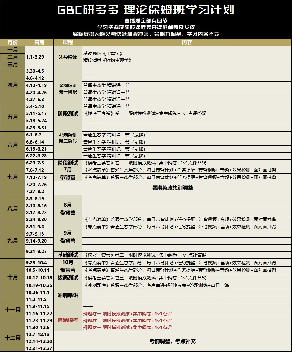 ①全年保姆A班:1月12月