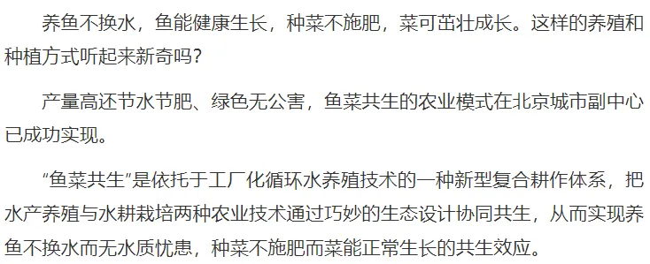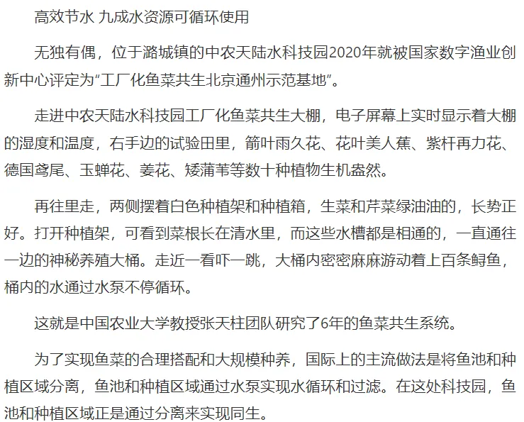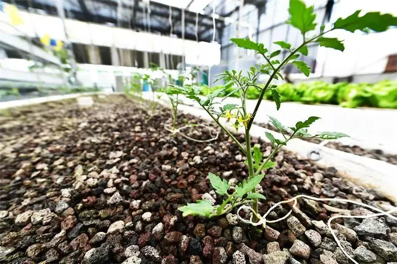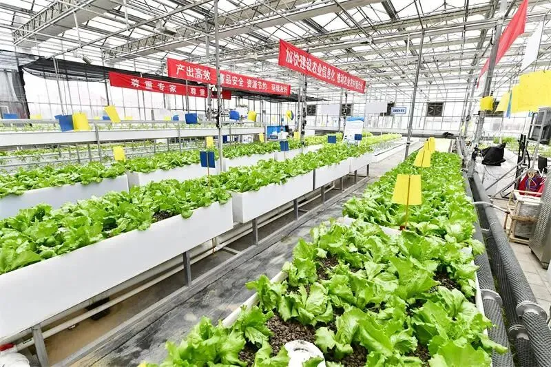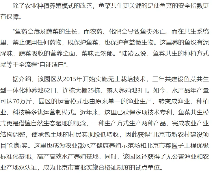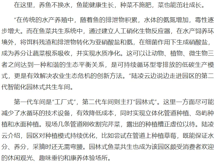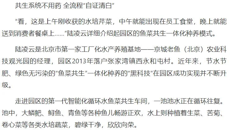 京城老鱼(北京)农业科技观光园里,碧绿的水培蔬菜与畅游的鱼儿实现了协同共生。