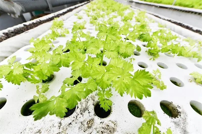 种在鱼菜共生大棚里的芹菜,45天就可以收获,且可四季生长。