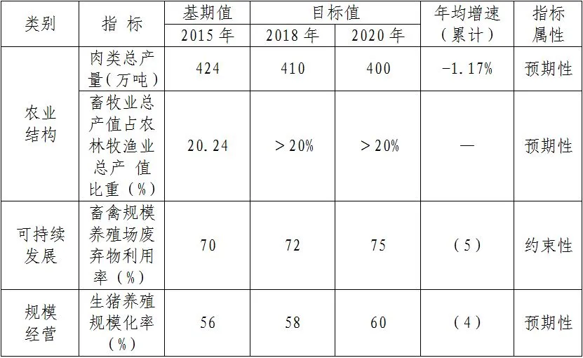 广东农业现代化“十三五”规划中畜牧业主要指标