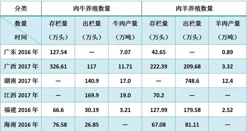 南方区肉牛羊养殖统计表
