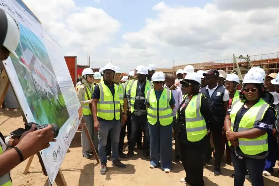安哥拉时间2026年1月17日, 安哥拉共和国渔业和海洋资源部部长卡门·多斯桑托斯(Carmen dos Santos)阁下,在渔业部国务秘书阿尔瓦罗·达库尼亚·坎迪多·多斯桑托斯(Álvaro da Cunha Cândido dos Santos)、北宽扎省第一副省长埃斯佩兰萨·多明戈斯·罗德里格斯(Esperança Domingos Rodrigues)的陪同下,赴北宽扎省视察集团公司中安雷竣建筑有限公司(以下简称“中安雷竣”)承建的渔业培训中心项目。该工程总占地面积约4550㎡,包括鱼类加工区、行政区、实验室以及2个渔船停靠码头等,项目配备了全循环水产品加工线,可提供水产品加工与质量安全等多方面的专业培训,为构建安哥拉渔业可持续发展人才引擎奠定基础。集团公司副总裁魏瑞海、第一事业部常务副总经理朱锡松等全程陪同。