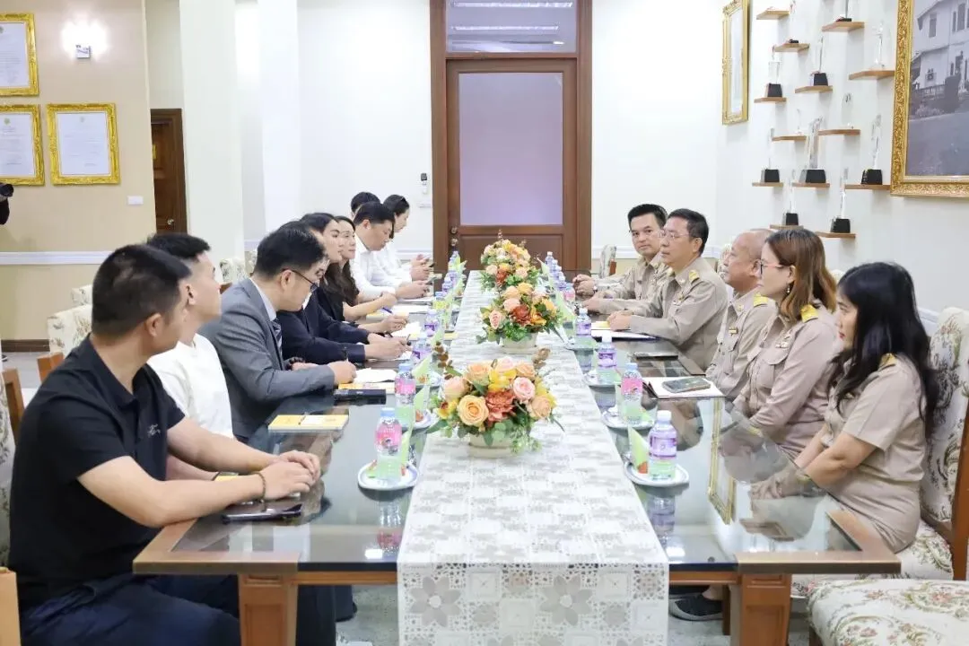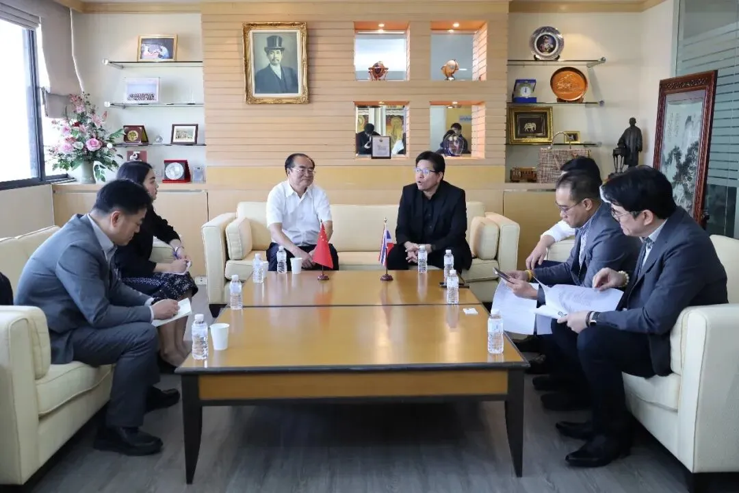 访问期间,泰王国驻成都总领事馆陪同代表团礼节性拜会了泰国农业与合作社部畜牧司司长宋川博士(Dr.Somchuan Ratanamungklanon),双方就家禽副产品的生产标准、检验检疫要求及出口监管制度等议题进行了深入交流,并探讨了泰国与四川省在推动畜牧业可持续发展方面的合作方向。代表团还实地走访并与泰国家禽产业的龙头企业进行了交流,包括 CPF (Thailand) Public Company Limited 及 Bangkok Ranch Public Company Limited,重点了解其生产能力、加工流程及产品质量标准,以评估泰国家禽副产品的产业优势和出口潜力。此外,代表团还礼节性拜会泰国国家航运出口商协会执行主任Mr. Kongrit Chantrik ,并参访泰国扶农市场营销机构(Or Tor Kor Market),以深入了解泰国农产品与食品的物流体系、市场流通机制及消费趋势。
