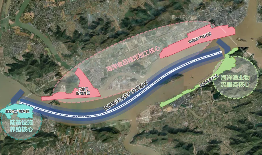 该平台位于环石浦港区域,总规划面积约7平方千米,重点布局鹤浦渔港、北欧水产园、石浦门前塘、中国水产城四大功能片区,创新构建了“一条鱼”全生命周期招大引强机制,推动形成从种业研发、养殖捕捞、加工流通到贸易服务的全产业链空间载体。平台已落地一批具有全国乃至国际影响力的标杆项目,包括亚洲首个北欧鲑鱼RAS陆基养殖项目、浙江首艘半潜式深远海养殖平台“东海一号”,以及全国首批、全省首艘自主设计建造的南极磷虾捕捞加工船等。