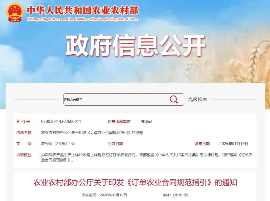 农业农村部办公厅关于印发《订单农业合同规范指引》的通知