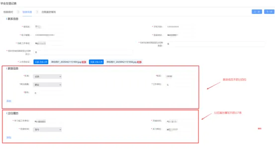 过往履历信息不能够超过七条,且需要从高中开始写起、必须包含本校(中南林业科技大学)就读经历