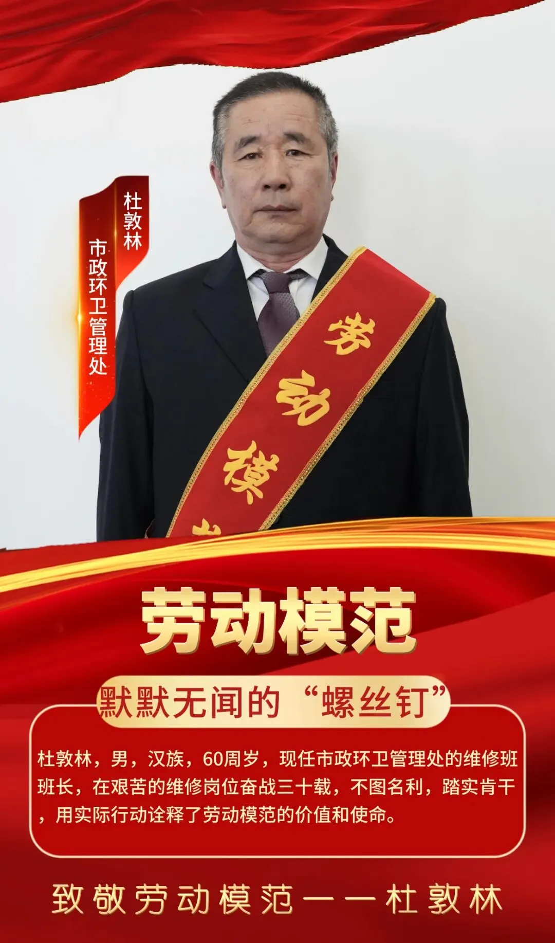 杜敦林,男,汉族,60周岁,现任市政环卫管理处维修班班长。1980年参加工作,成为房产处的一名维修工。工作中他一方面积极向老同志虚心请教,一方面利用休息间隙对拆换下来的零件进行研究、维修,把所有的业余时间都用在了钻研业务上。随着单位维修量的增加,工作难度也在加大,原来作为疏通主力的管道疏通机,常因施工中进水而造成电源短路,既影响疏通的效率还存在事故隐患,杜敦林决心要对原有机器进行技术改造,经过多次的反复实践,终于解决了管道疏通机的技术问题。