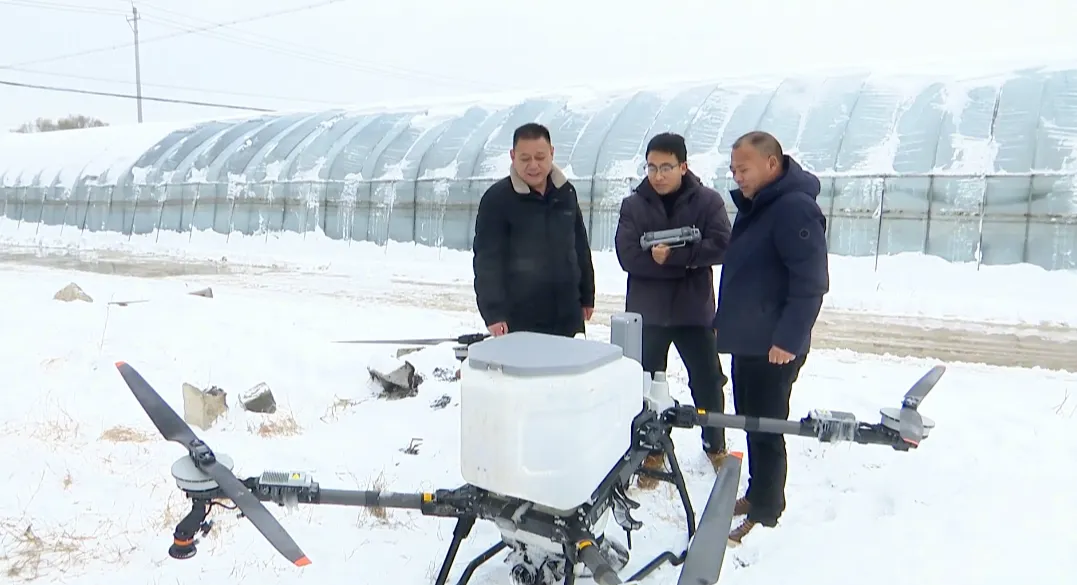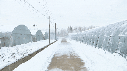 这次雪下得比较大,加之大棚面积大、高度高,采取人工除雪存在安全隐患,所以我们采取无人机除雪,速度比较快、效果显著。