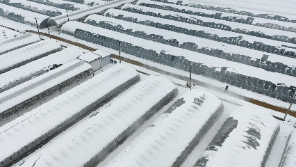 在萧县尚俊家庭农场果蔬种植基地,降雪过后,连片的设施大棚被积雪覆盖,增加了大棚结构的承载能力,导致部分大棚存在坍塌的可能性。为保障大棚安全,蔬菜能够如期上市,当地农技部门调集无人机对所有大棚喷洒盐和洗涤剂。经过一个小时的飞行作业,部分大棚积雪状况得到有效缓解。