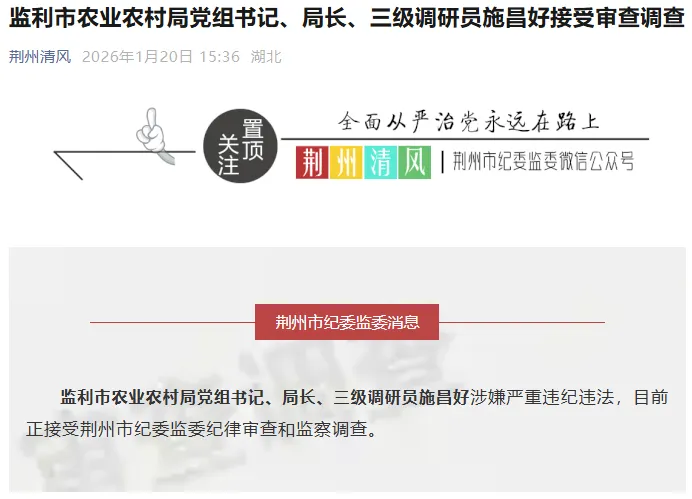 据嘉鱼县纪委监委消息:嘉鱼县绿色产业发展投资有限公司原法定代表人、董事长任立伟涉嫌严重违纪违法,目前正接受嘉鱼县纪委监委纪律审查和监察调查。