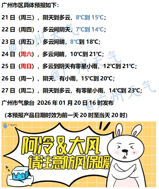 较强冷空气已开始影响广州,叠加云量增多,各区气温明显下降。未来两天气温低迷,天气阴冷,家人们注意做好防寒措施,及时添衣加被。22日早晨将出现过程最低温,23日起气温逐渐回升,但早晚仍较冷,家人们坚持过这两天啦~