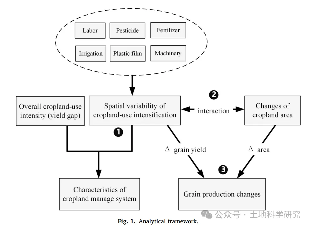 方法:采用K均值聚类算法识别出不同的农田管理系统。运用LMDI方法量化农田面积变化与集约化程度对粮食产量的贡献。