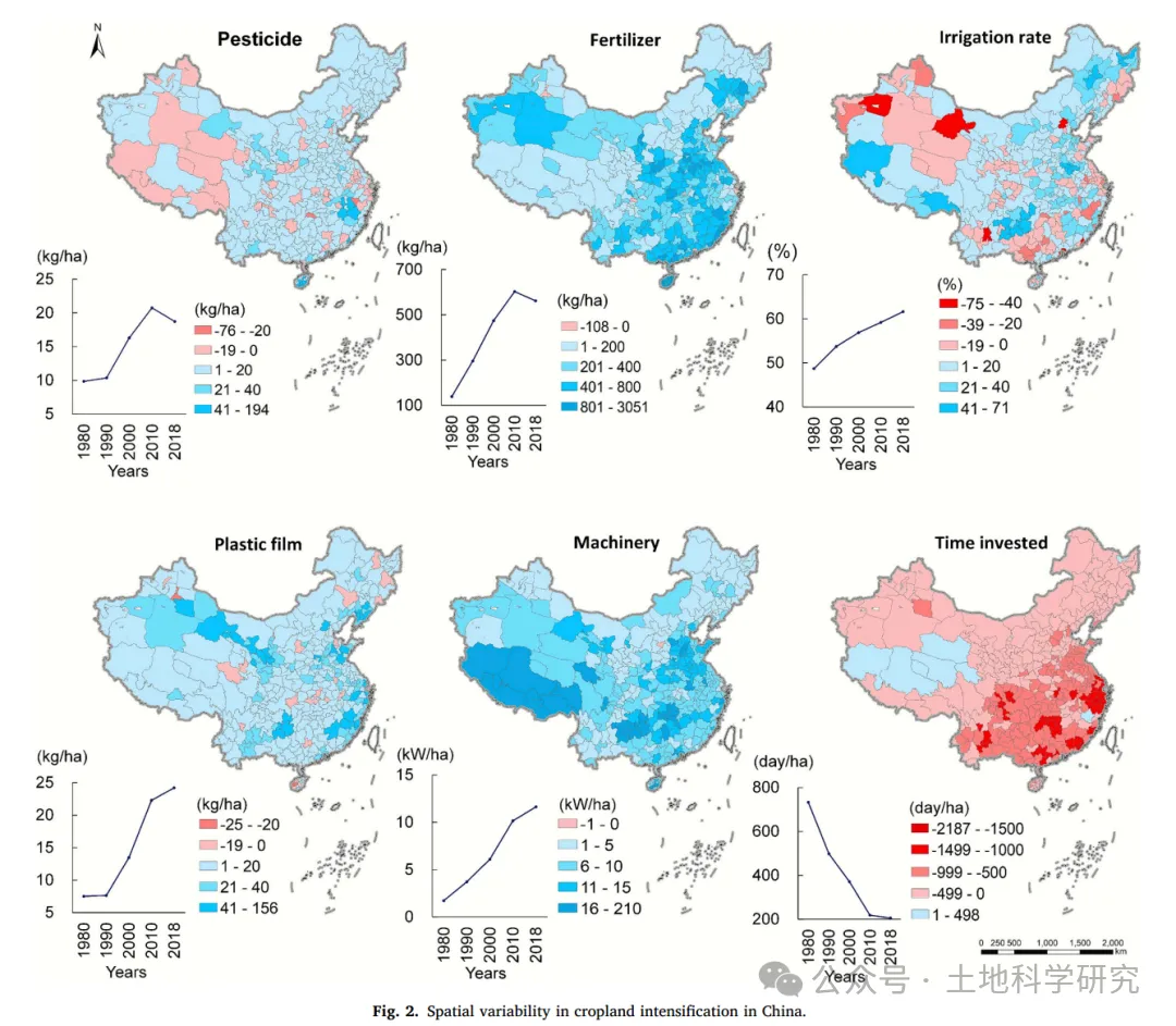 • 中国各地呈现耕地面积扩张与耕作强度提升的双重趋势。