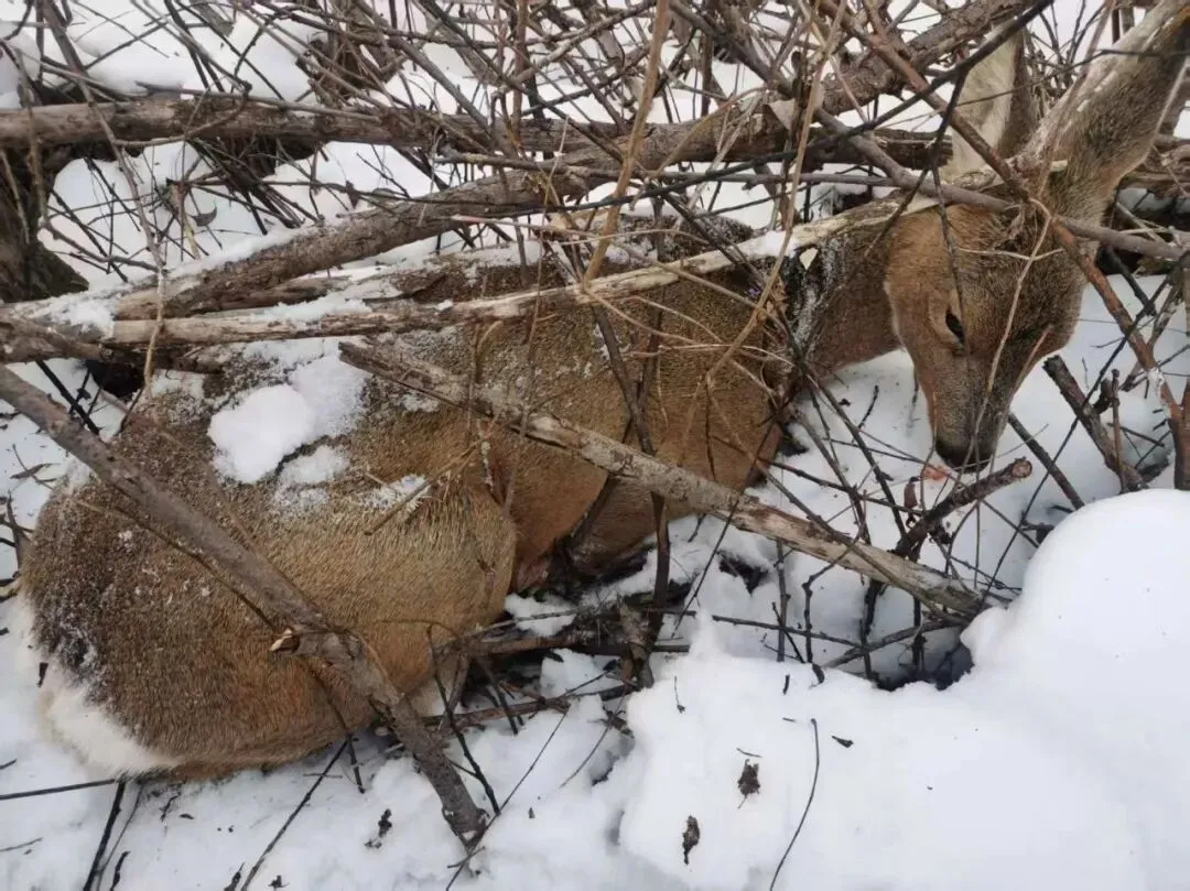 1月13日下午3点50分,公司资源部接到石门子林场巡护员报告,称在林场苗圃附近的松树林内发现一只受伤狍子(又称矮鹿),疑似腿部受伤,无法行动。接到报告后,公司资源部迅速响应,立即组织工作人员携带相关应急装备赶赴现场。