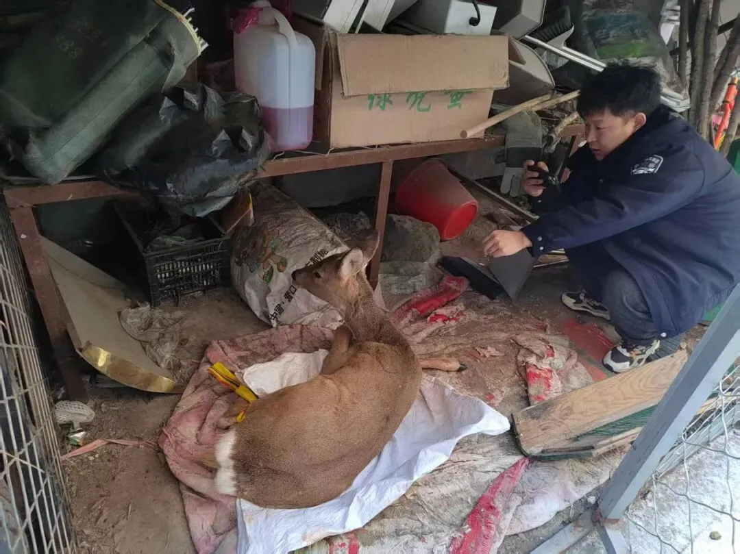 经仔细查看发现狍子一只前腿流血受伤,另一只前腿骨折,无法站立行走,且身体状况虚弱,需要立即进行治疗。随后,工作人员进行了简单的处理包扎后,移交敦化市林业局动保科。当前该狍子已被敦化市林业局动保科送至延吉市野生动物救助中心进行专业救治。