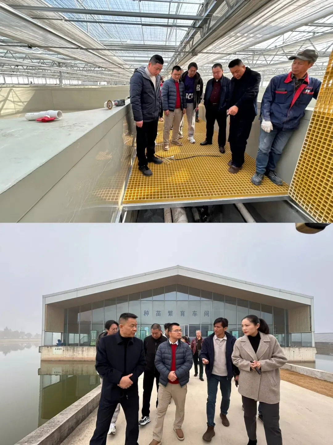 02 实地考察:设施升级+尾水治理,探索生态渔业新路径 次日,调研团先后走访上海城市电力发展有限公司崇明岛工厂化养殖基地、上海地产集团新弘生态农业崇明岛养殖基地,以及上海水生野生动植物保护研究中心中华鲟自然保护馆。