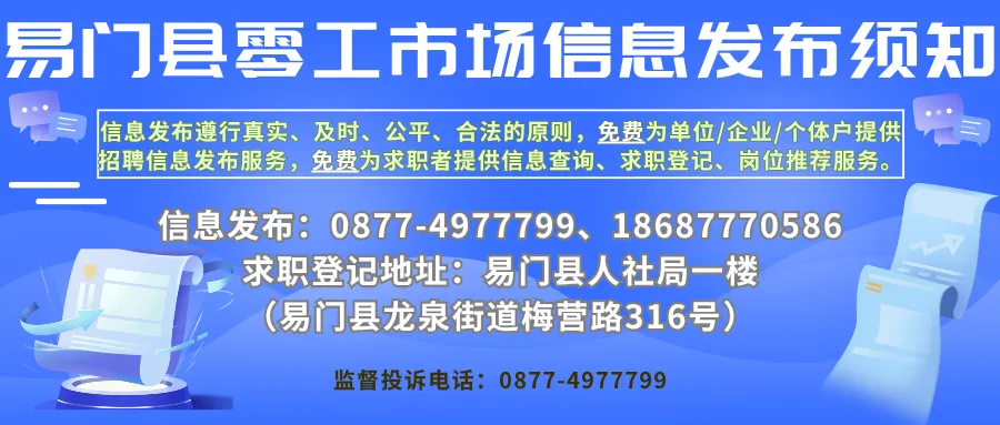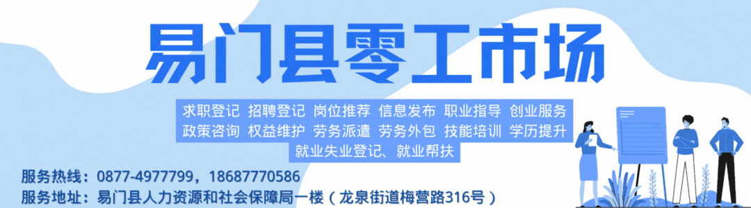 2.报名地址:易门县龙泉街道梅营路316号(易门县人力资源和社会保障局一楼大厅辰信人力)