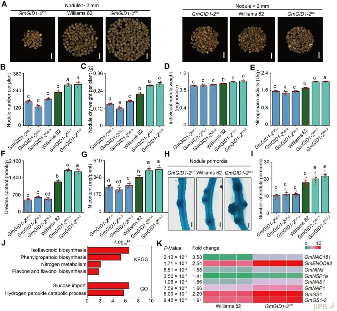 图3 敲除GmGID1-2增强大豆根瘤固氮