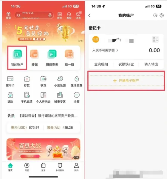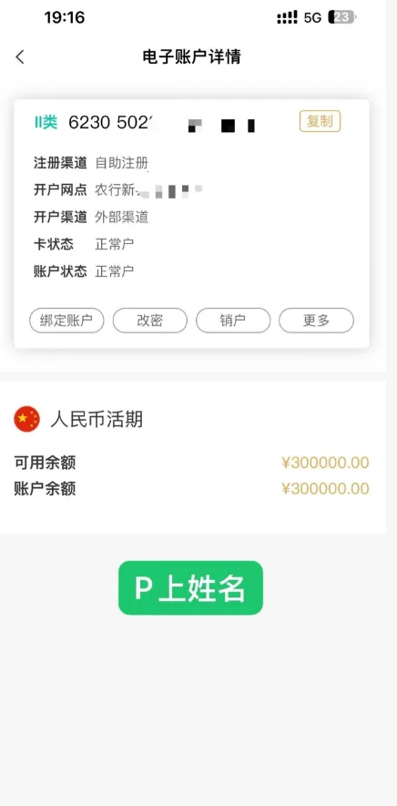 - 开户成功后,返回农行APP首页→「我的账户」→「更多账户」,找到新开通的二类账户,核对网点信息是否与填写一致;