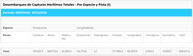 2025年1月1日至12月31日期 间,阿根廷港口的 海产品 总卸货量涵盖所有商业 鱼类、甲壳类动物和软体动物 ,这证实了渔业作为该国主要外汇来源之一的战略地位。历史上,渔业 每年出口额超过20亿美元,并为超过 10万名工人 创造了直接和间接就业机会,主要集中在 巴塔哥尼亚 和 布宜诺斯艾利斯省 。
