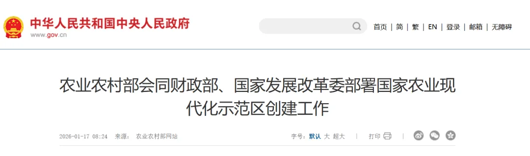 近日,农业农村部、财政部、国家发展改革委印发《国家农业现代化示范区创建工作方案》(以下简称《方案》),部署示范区创建工作,明确总体要求、创建目标、创建任务、工作程序等内容。