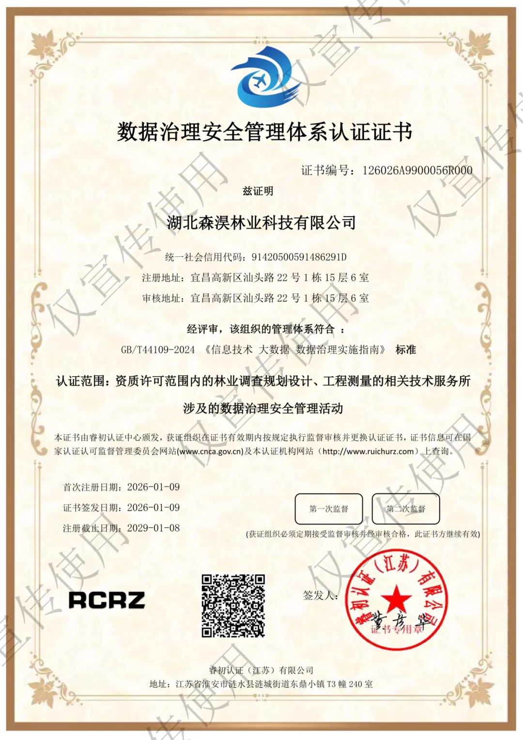 2026年1月初,森淏林业数据治理安全管理体系认证会议顺利举行。公司依据GB/T44109-2024《信息技术大数据数据治理实施指南》,成功通过数据治理安全管理体系认证。