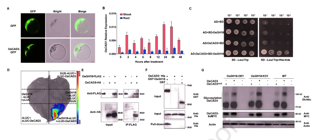 OsCAD3 蛋白与 OsGH18 相互作用