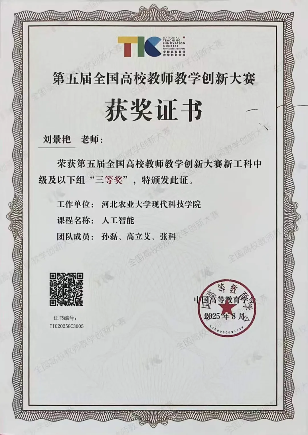 9.获2025年河北省高校创新创业教改项目1项,专创融合课程1项;