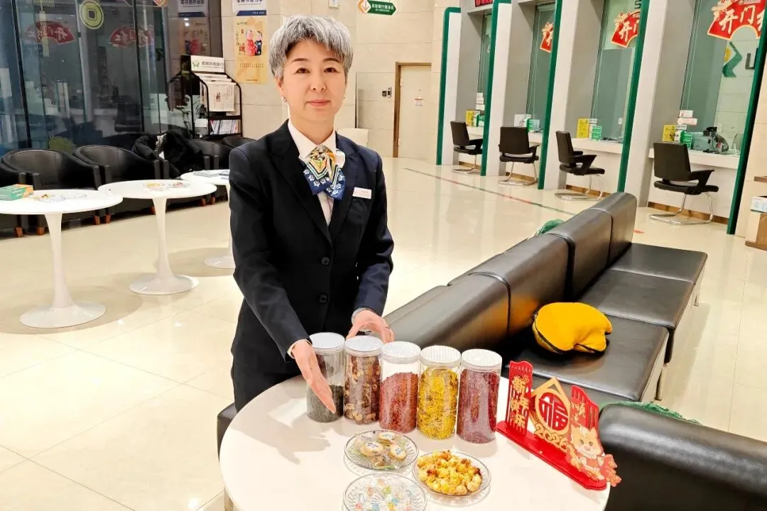 潞城农商银行各网点营业部为了让前来办理业务的客户感受到浓浓的新年氛围,不仅在服务上“升温”,更在环境上“添彩”,用满满的“仪式感”和“烟火气”,打造了一处处温暖人心的“新年驿站”。在大堂的一角,热茶桶里的水热气腾腾,工作人员会主动为等候的客户递上一杯茶水,驱散冬日的寒意。旁边的果盘里,摆满了香甜的爆米花和寓意甜甜蜜蜜的糖果,客户随手拿起一颗,甜在嘴里,暖在心里。