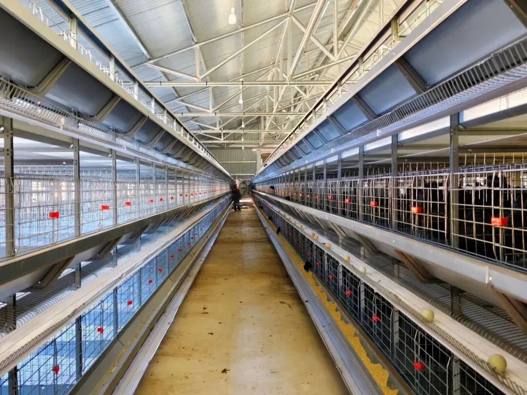 走进宽敞明亮的养鸡厂房,三层塔式养殖架整齐排列,1200只鸡在专属“楼层”里悠然觅食。加料、供水、清粪、空气能加温、舍内环境调节等环节,全由智能系统操控,1100平方米的鸡舍仅需2名工作人员值守,养殖效率较传统模式实现了质的飞跃。