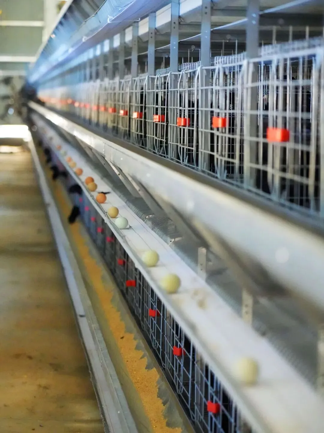 △ 鸡蛋通过设备传送带运输到分装点