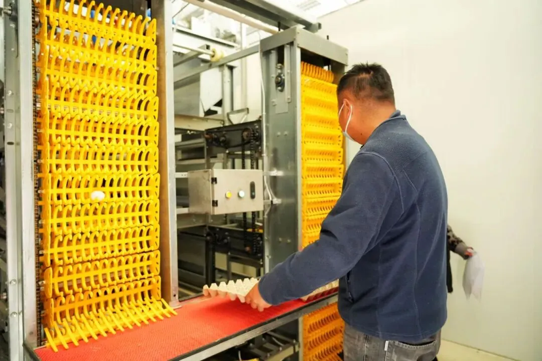 △ 工作人员通过智能设施收集鸡蛋