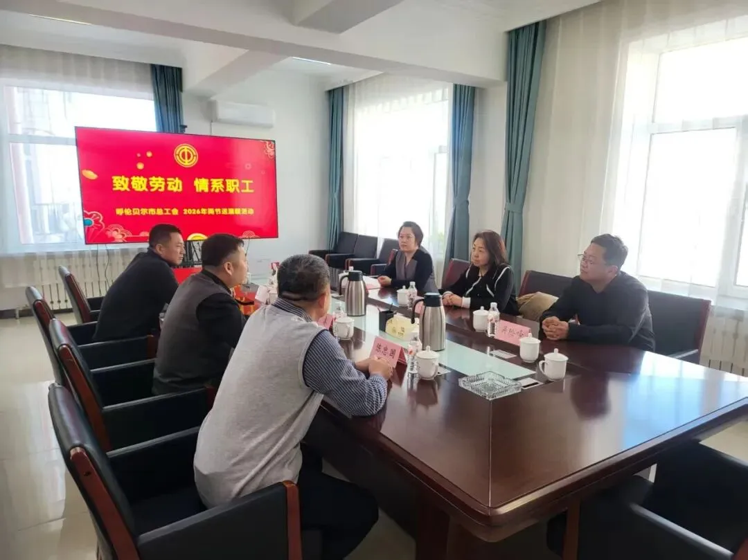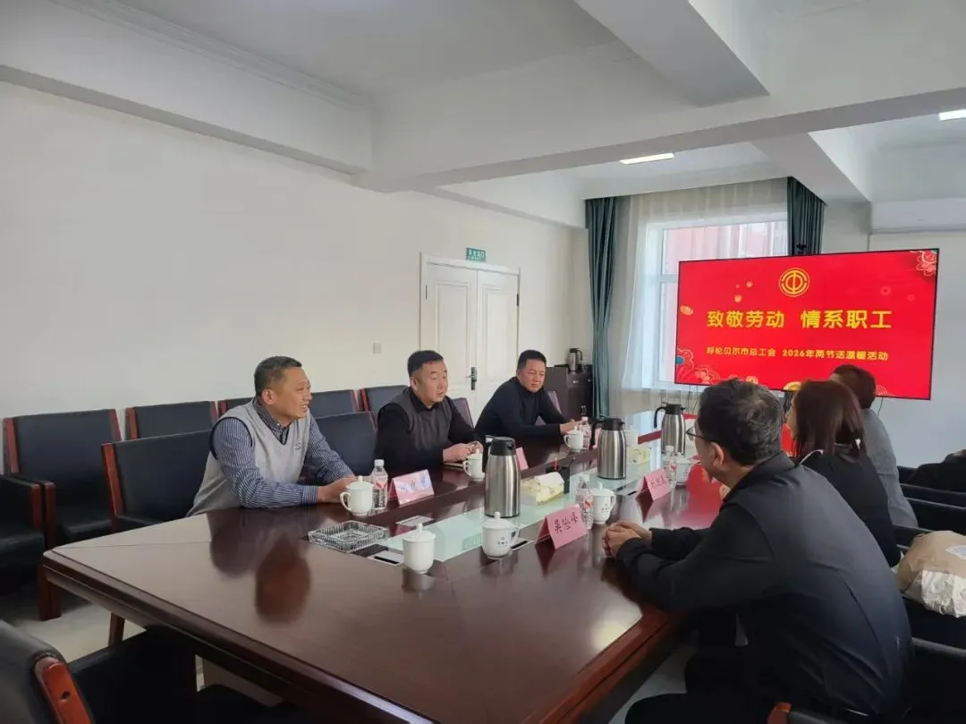 凛冬送暖,情系一线。2026年1月21日,呼伦贝尔市总工会副主席刘迎春、吴险峰,组宣部长米文娟一行三人,深入呼伦湖渔业有限公司开展元旦、春节“两节”送温暖慰问活动,把工会组织的关怀精准送达基层职工,随后在公司二楼会议室召开座谈会。