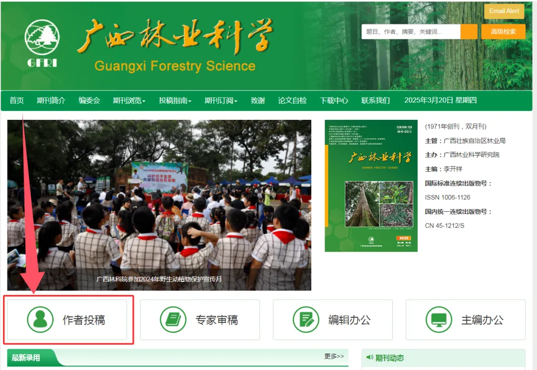 (1)打开官网(https://gxlykx.gxlky.com.cn),点击【作者投稿】
