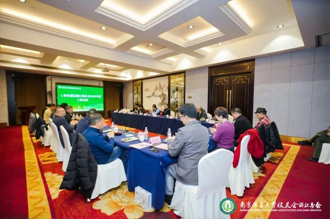 2026年1月17日上午,南京林业大学浙江校友会一届四次理事会在杭州成功召开。会议审议通过浙江校友会2025年度工作总结报告,审议通过浙江校友会2025年度财务报告,审议通过增补理事、副会长名单,审议通过聘请法律顾问,审议通过聘请俱乐部主席名单,审议通过校友工作奉献奖名单,并讨论2026年校友会工作计划。吉祥、李琴、李延军、何海文、金永顺、宋国元、张建华、严红根、黄坚钦、王文忠、周川、李松、武超、窦圣、杨钟亮、许海峰、许海东、王惠雄、夏国元、刘 静、刘艳、唐展(叶润露代表)等二十余位理事代表参加会议。本次会议由副会长兼秘书长李琴主持。