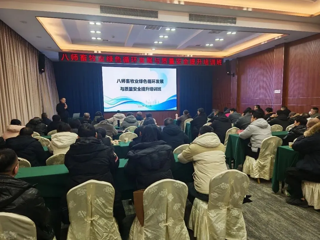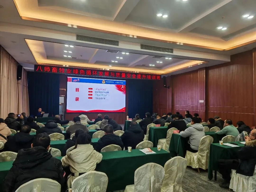 为进一步夯实师市畜禽粪污资源化利用工作基础,推广先进养殖技术与绿色发展模式,八师石河子市畜牧水产发展服务中心于2026年1月21日在石河子宾馆举办畜牧业绿色循环发展与质量安全提升培训班。各团场(镇)农业林业和草原中心相关工作人员、畜禽规模养殖场(户)负责人及技术骨干等80余人参训,共同开展学习交流。