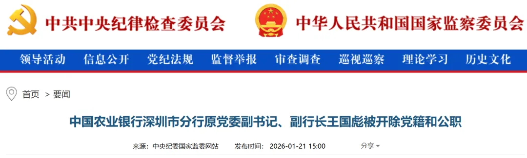 中央纪委国家监委网站讯 据中央纪委国家监委驻中国农业银行纪检监察组、山东省纪委监委消息:日前,经中央纪委国家监委批准,中央纪委国家监委驻中国农业银行纪检监察组、山东省菏泽市监委对中国农业银行深圳市分行原党委副书记、副行长王国彪严重违纪违法问题进行了立案审查调查。