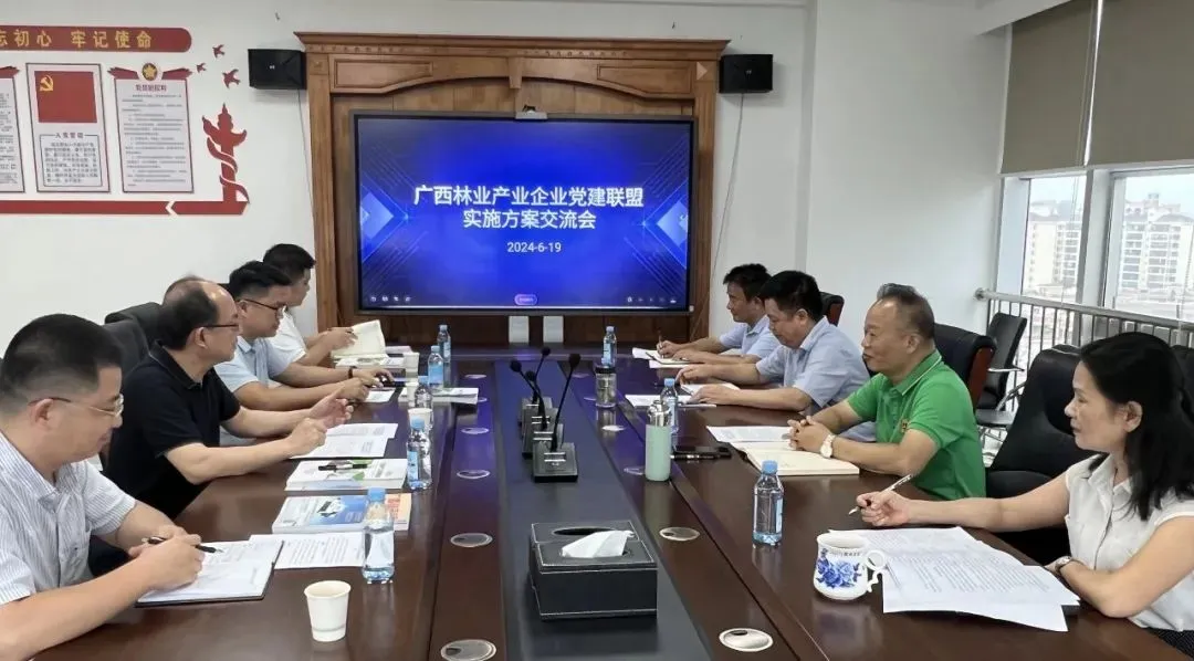 6月19日,广林集团党委副书记、董事、工会主席覃勇军率队到广西林业产业行业协会调研,就广西林业产业企业党建联盟有关事宜开展座谈交流。广西林业产业行业协会会长万业靖参加座谈交流。