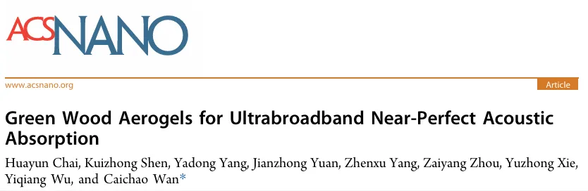 【ACS nano】中南林业科技大学【绿木气凝胶用于超宽带近完美声学吸收】