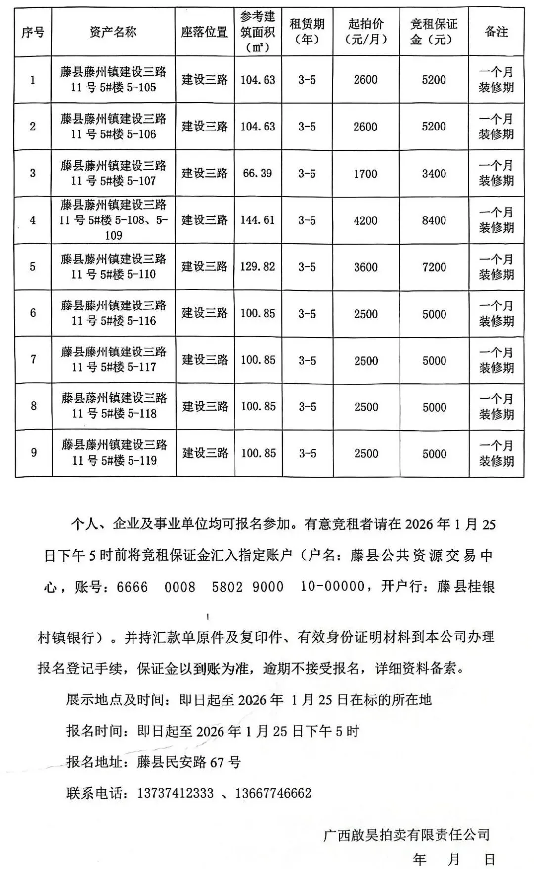 >藤县森茂林业投资发展有限责任公司商铺招租公告(2026年第1期)