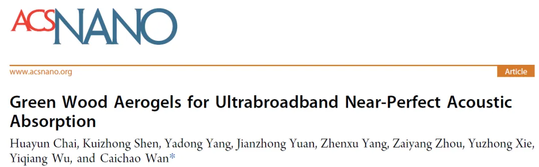 针对上述问题,中南林业科技大学万才超教授团队提出了一种“梯度孔隙循环(GPC)”策略,用于构建具有分级有序结构的绿色气凝胶,以突破超宽频完美/近完美吸声的技术瓶颈。该研究选用木质细胞壁S2亚层中纤维素/木质素比例较高的MFs作为基元,其活性高于传统中层(ML)来源的MFs,更利于组装形成稳定的三维气凝胶。所得气凝胶具有各向异性的平行层状微通道、层内多级孔隙及丰富的层间弹簧状条带,这些结构协同作用,可实现对声波传播的高效衰减。仅30 mm厚的该轻质气凝胶即表现出超宽频近乎完美的吸声性能,且在极端温湿条件下性能保持稳定,并可经简单改性进一步优化。此外,该材料还展现出超弹性、优良的生物相容性与生物可降解性,在未来绿色声学应用领域具有广阔前景。相关成果以“Green Wood Aerogels for Ultrabroadband Near-Perfect Acoustic Absorption”为题,发表在ACS NANO上。