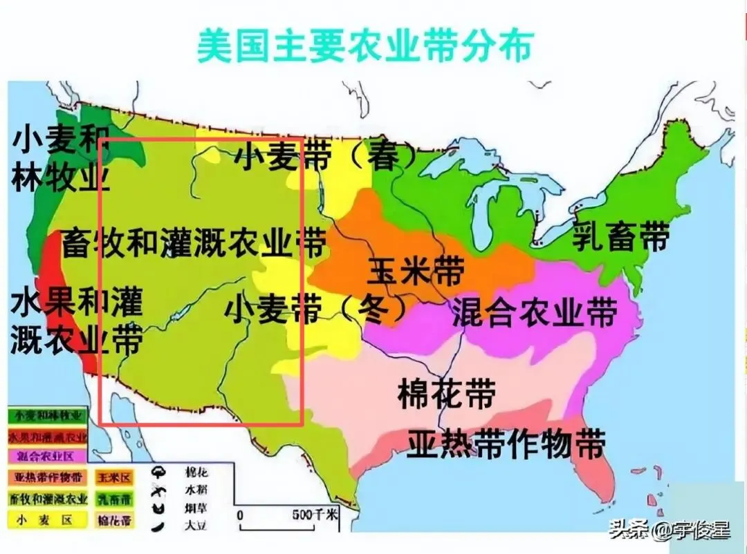 红框标注的灌溉农业带大部分需要抽取地下水