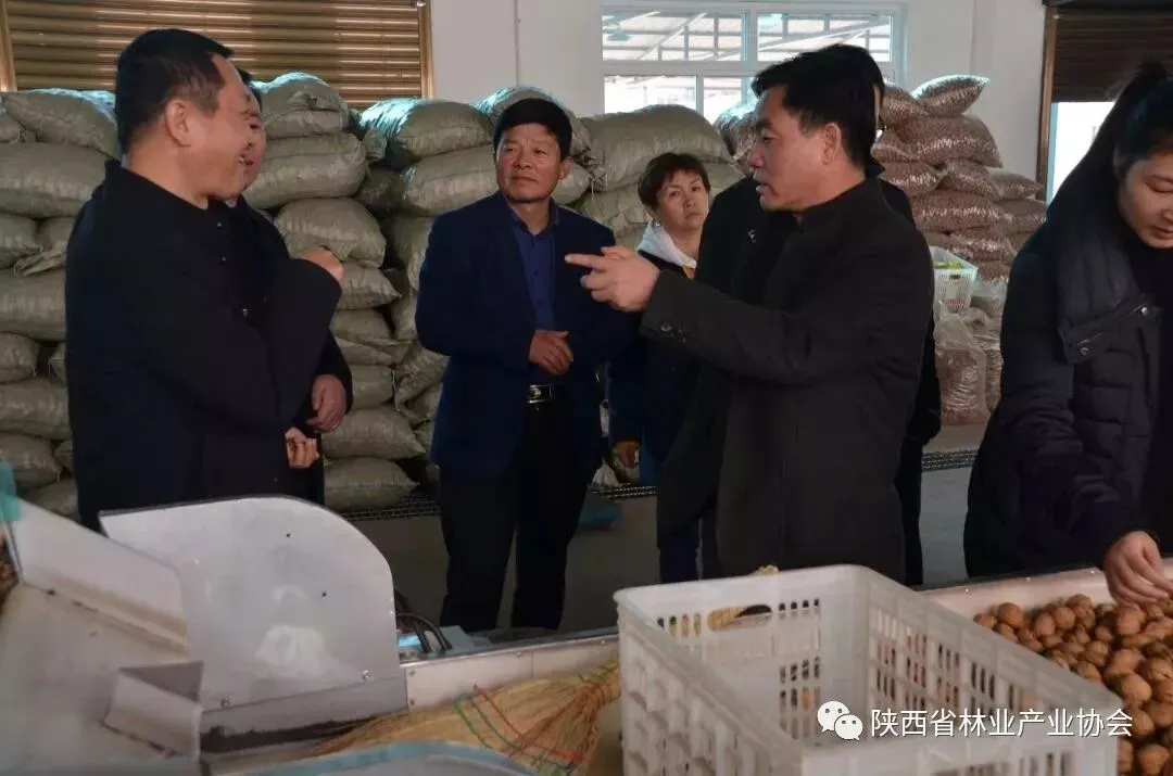 3、陕西省农业农村厅任志伟处长一行11月13日到协会理事单位——黄龙县干果公司调研核桃产业,调研组走进公司核桃加工车间,陈永杰总经理详细介绍核桃加工流程及各种设备的用途,调研组对黄龙核桃赞不绝口,对黄龙县核桃产业未来发展前景充满希望!